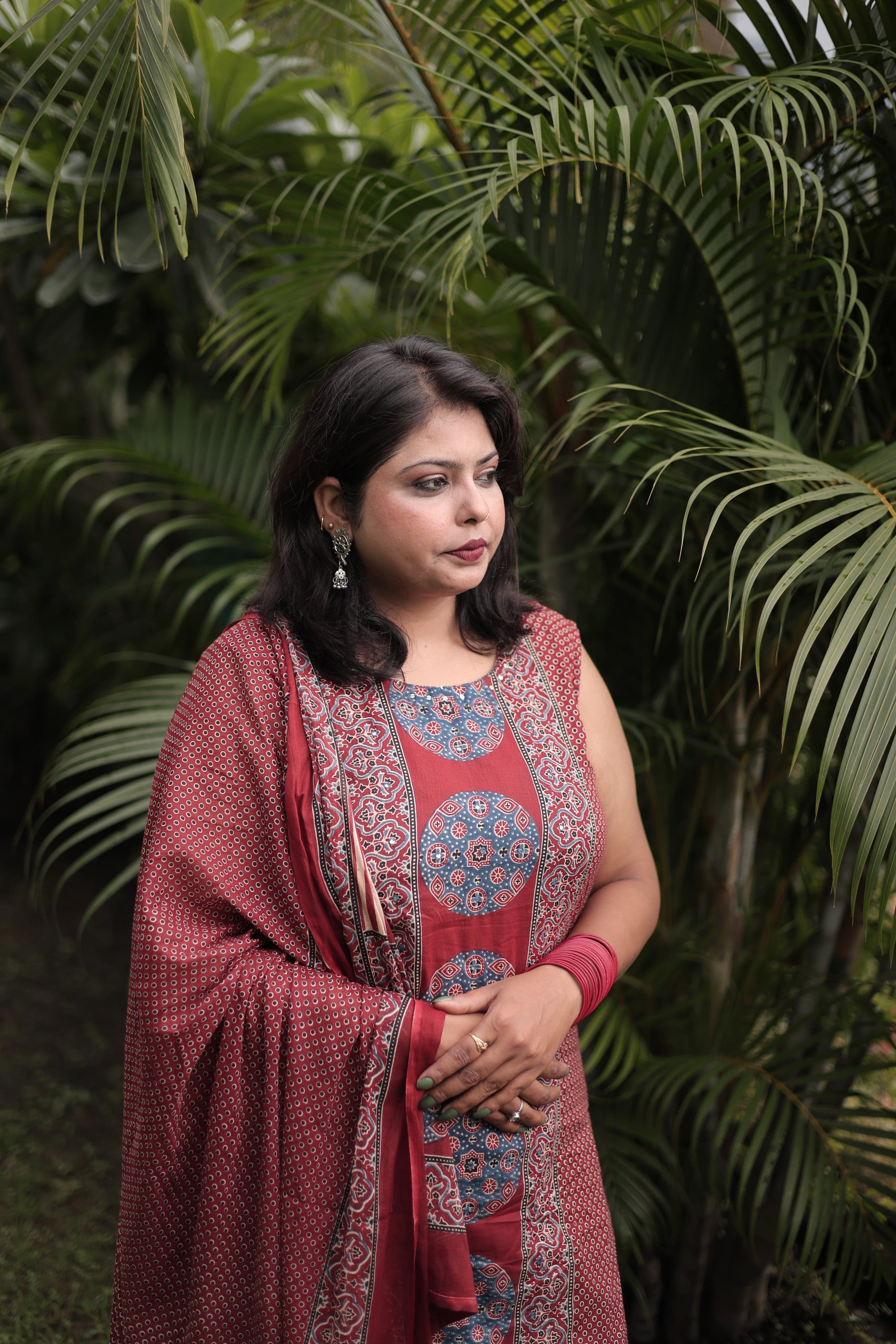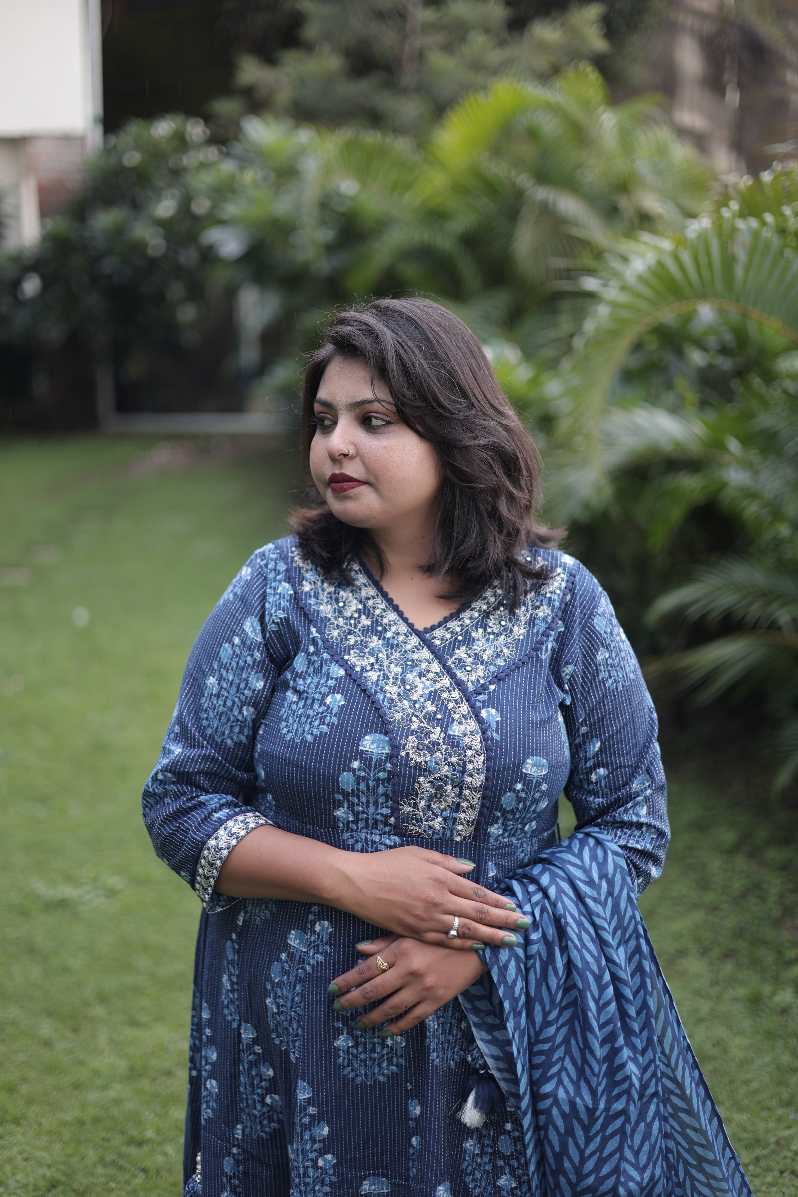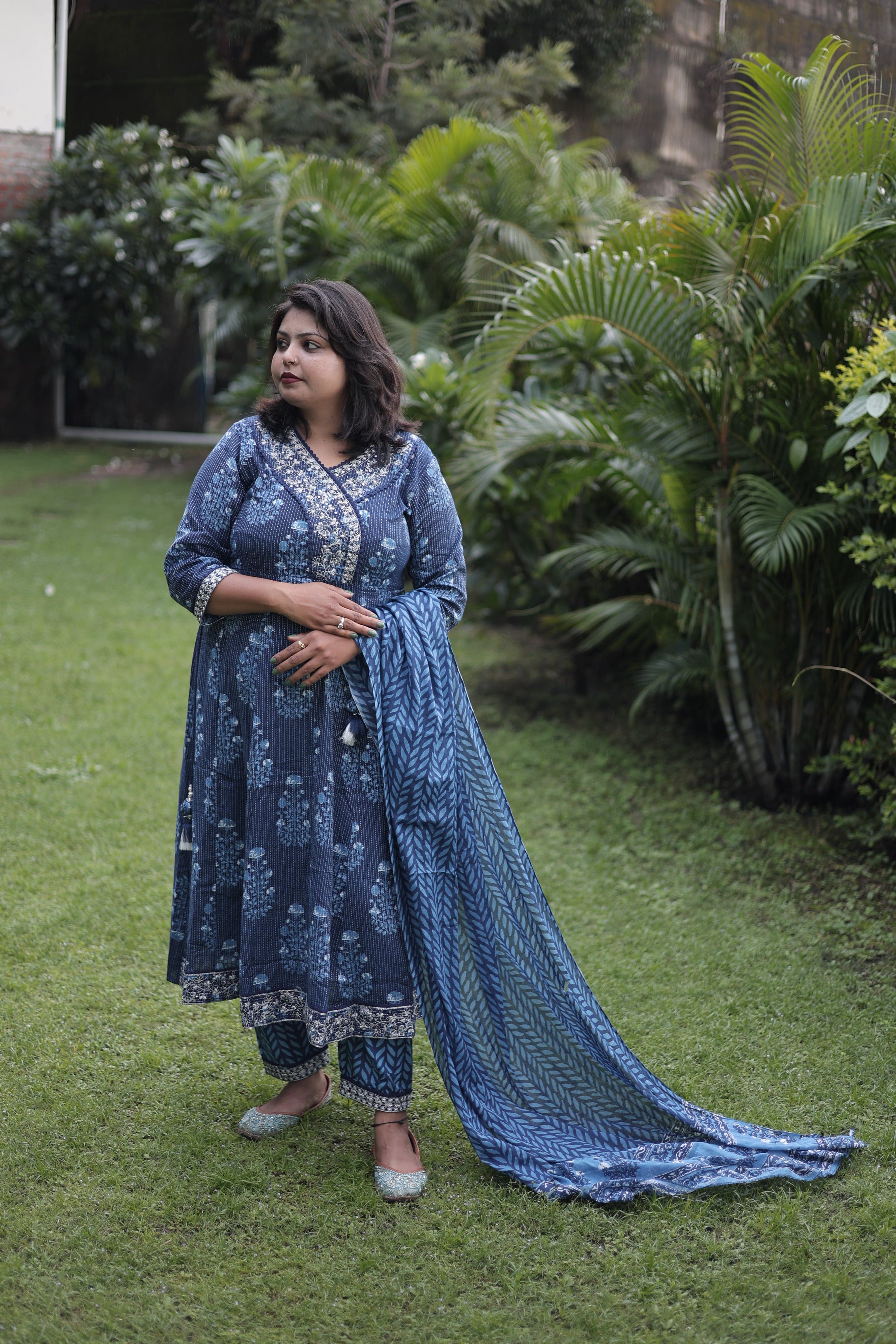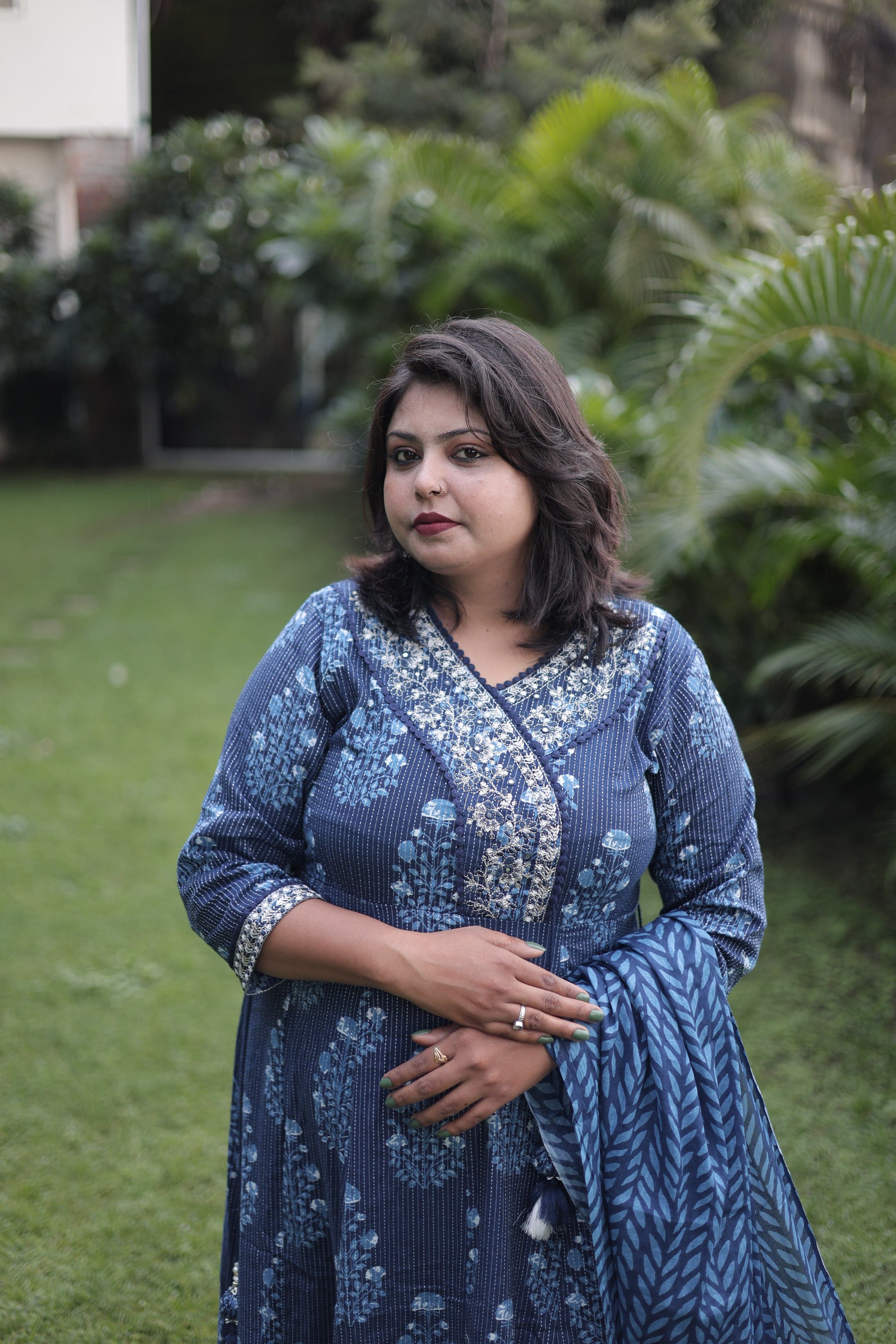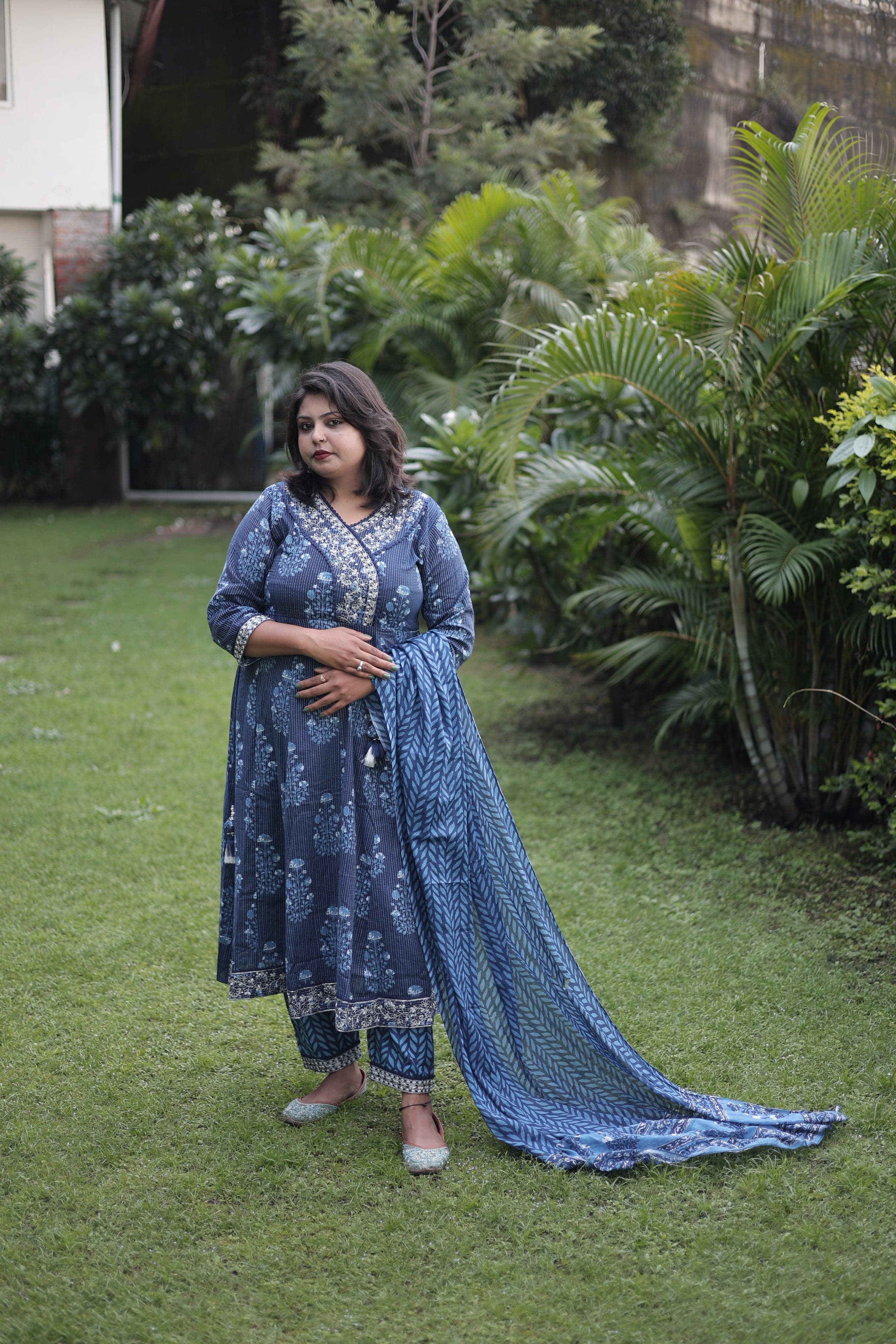 Women Printed Flared Anarkali Kurta with Pant Dupatta Suit Set (Fully Stitched, Ready to Wear)