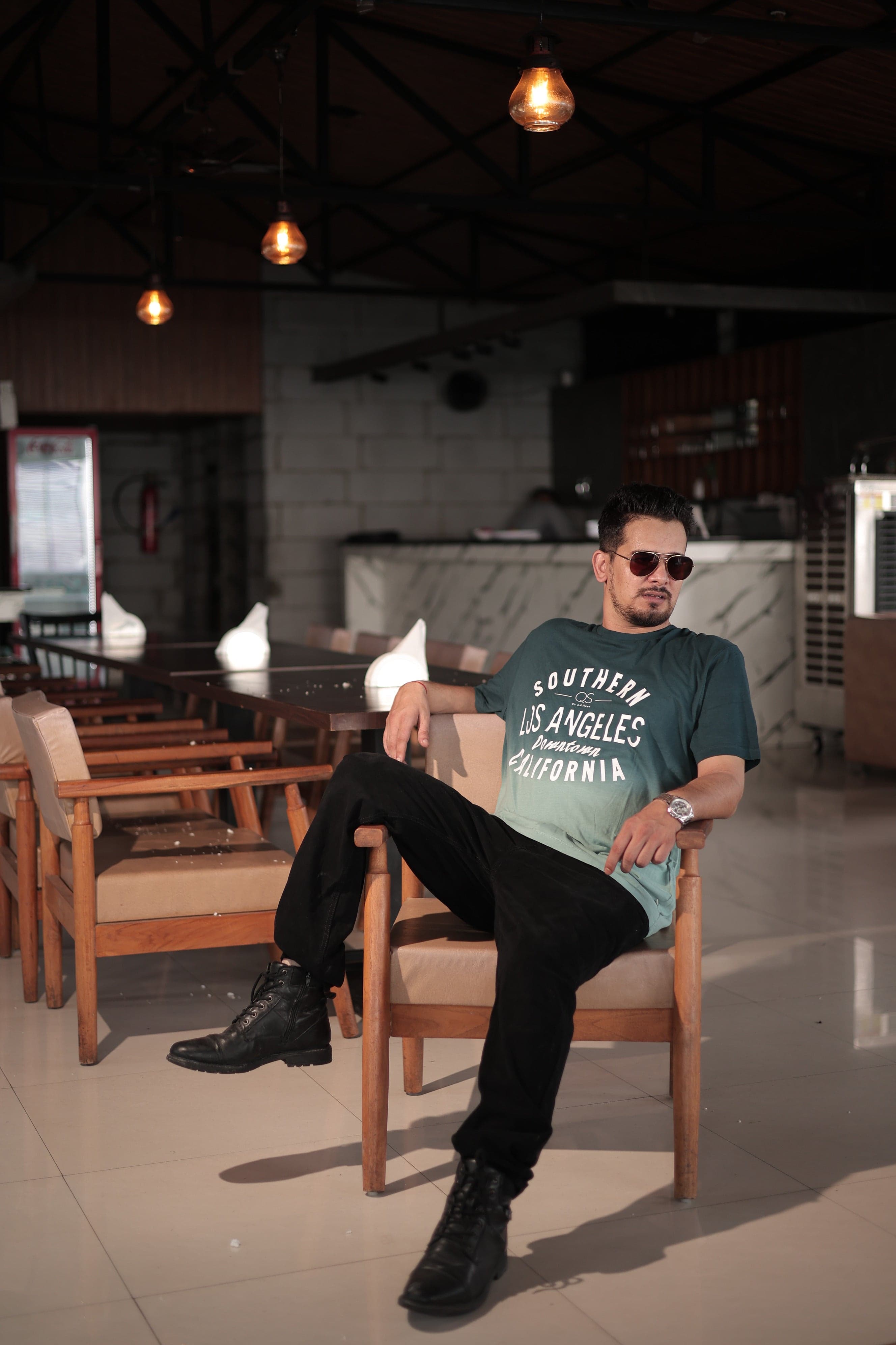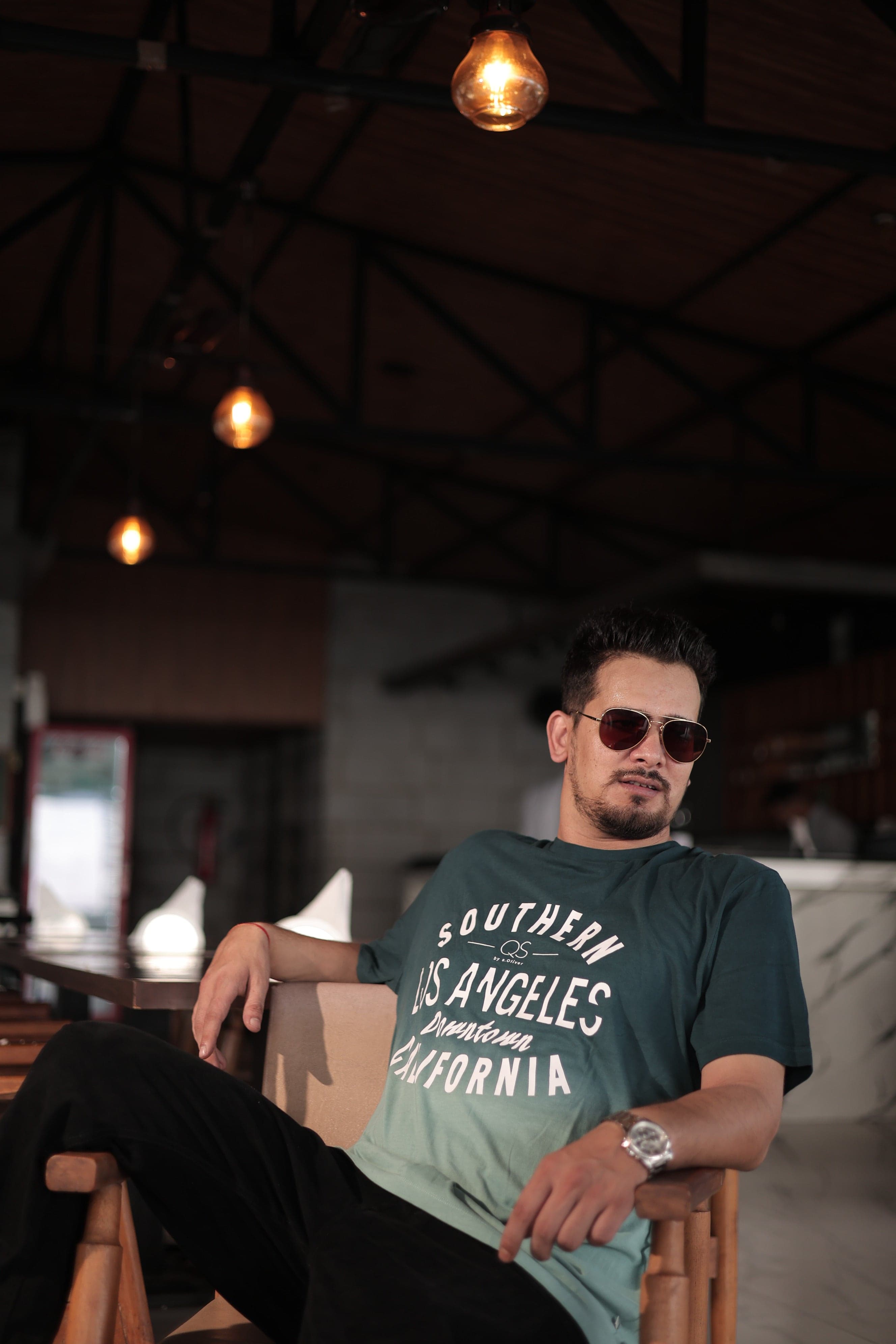 Bottle Green Short Sleeve Typographic Chest Print T-Shirt (Ready to Wear)