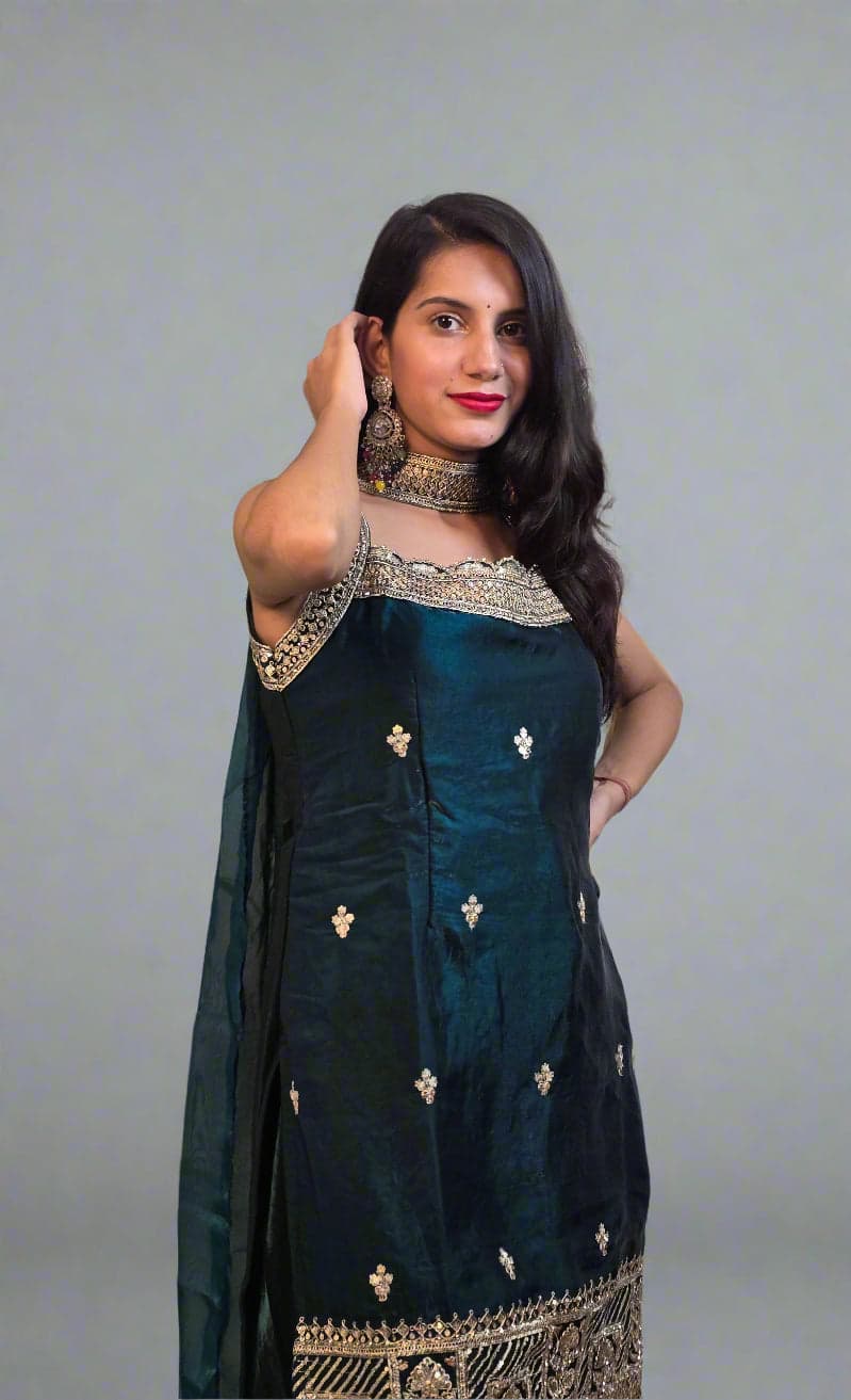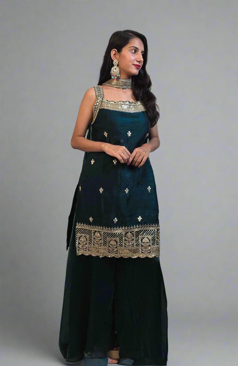 Elegant Embroidered Sharara Set with Dupatta – Deep Jewel Tone