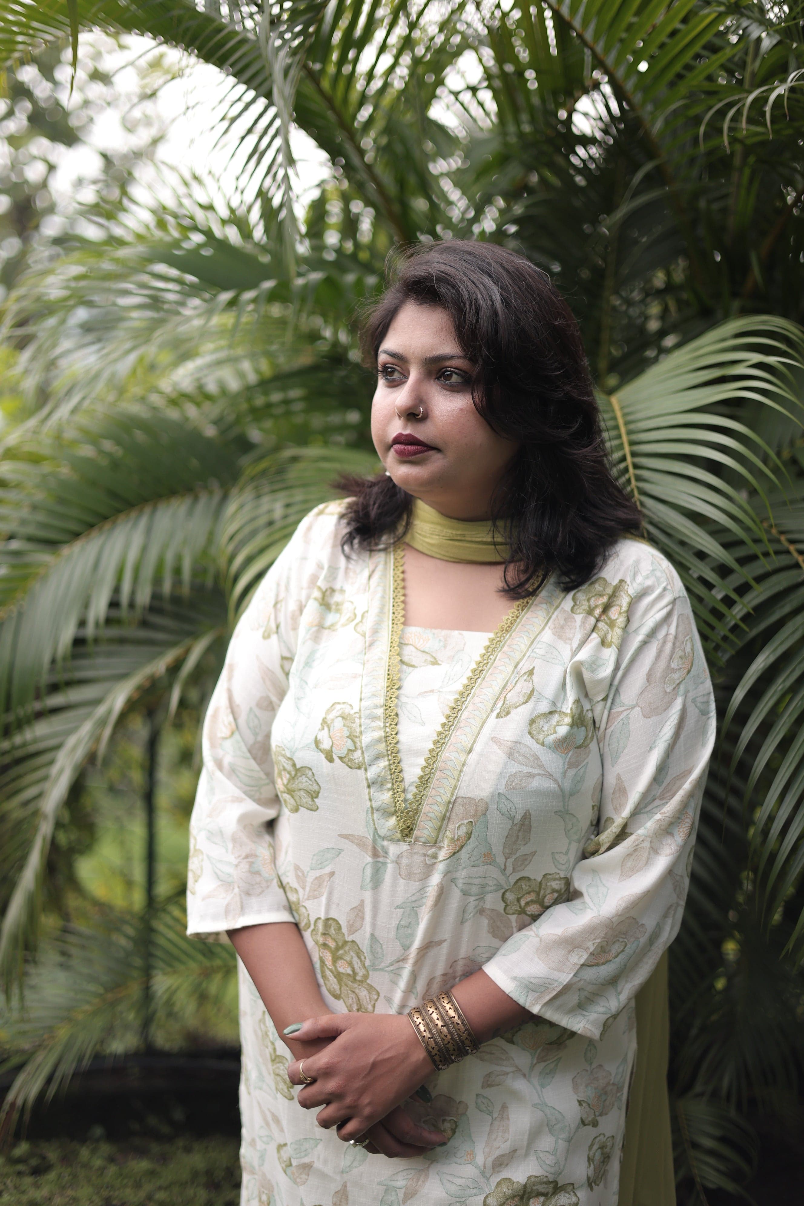 Floral Printed Empire Pure Cotton A Line Kurta with Palazzos & Dupatta Set (Fully Stitched, Ready to Wear)